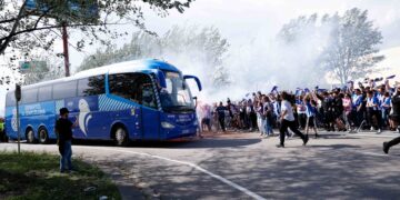 RCD Espanyol La afición perica se vuelca con el equipo: recibimiento masivo al autocar del Espanyol antes del duelo clave ante el Betis 4 de mayo de 2025