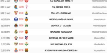 RCD Espanyol Horarios de la jornada 36 de LaLiga EA Sports: Espanyol – FC Barcelona 21 de abril de 2025