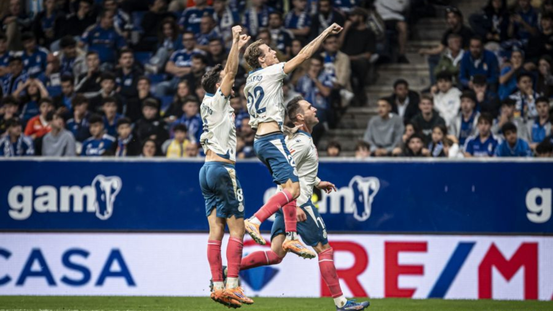 El Espanyol se reencuentra con los tres puntos en un partido que plasma el alma y el gran rendimiento colectivo del equipo. Regresaba LaLiga tras el segundo parón de selecciones de la temporada y el cuadro perico visitaba al Real Oviedo con ganas de reencontrarse con la victoria y con las posiciones nobles de la tabla. Manolo González dibujó un once con varias novedades -y marcado por la baja de Puado-: Dmitrović bajo palos; Rubén Sánchez ocupaba el lateral diestro y Carlos Romero el izquierdo, mientras que Cabrera, ya recuperado, y Riedel cerraban el centro de la zaga; Pere Milla -pegado a la izquierda- y Dolan -en la derecha- ocupaban los flancos de una medular que poblaban Edu Expósito y Pol Lozano; Roberto Fernández y Kike García eran los hombres más adelantados. En los primeros compases del choque el Espanyol demostró que, pese al parón, no perdió la esencia que le ha llevado al éxito este primer tramo de temporada: los blanquiazules -hoy teñidos de blanco- con una gran intensidad comenzaron presionando muy alto y generando peligro. Pese al dominio, este no se traducía en ocasiones claras y el primero en avisar fue el Oviedo, pero Dmitrovic detuvo el mano a mano que le midió ante Ilic.