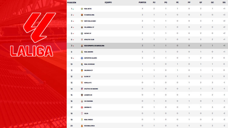 Así va LaLiga EA Sports 25-26 | El Betis acaba el viernes líder en solitario, con 4 puntos