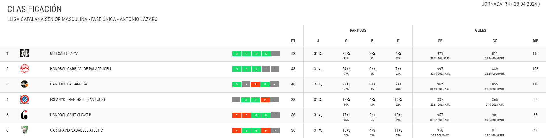Jornada 33 donde el ESPANYOL HANDBOL – SANT JUST pierde en casa ante el  BM POLINYA GODED por 26-34. Eloi de Francisco anotó siete tantos, muy seguido de Fran España, que metió cinco. Sin embargo, no fue suficiente para plantar cara a un buen  BM POLINYA GODED. El equipo de balonmano va en cuarta posición, muy lejos de los tres primeros.