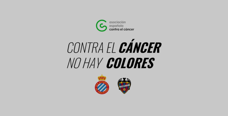 “Dentro del marco “La Super Liga Solidaria”, el RCD Espanyol y el Levante UD, en una acción conjunta y pionera, se olvidan de rivalidades, de puesto en la clasificación y suman esfuerzos en el Día Mundial contra el Cáncer (4 de febrero). Los dos clubs han preparado un vídeo con el lema: “Contra el cáncer no hay colores”. Jugadores y jugadoras de ambos equipos aparcan los colores y aúnan esfuerzos: “Sea del color que sea aúnan esfuerzos, porque contra el cáncer no hay colores. Vamos a luchar juntos”.