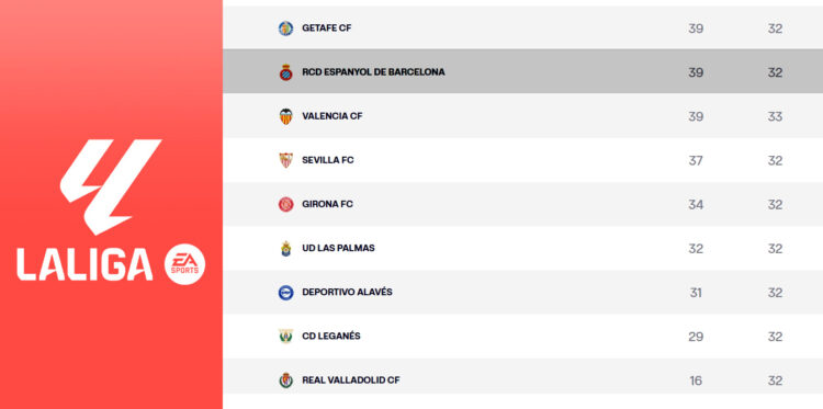La jornada 33 de LaLiga EA Sports no da tregua y llega entre semana: desde el martes 22 hasta el jueves 24 de abril, se juega una fecha clave para todo: para el título, para Europa, para la permanencia… y para los equipos a medio camino entre todo eso, como el RCD Espanyol, que visitaba Mestalla con la misión de asegurar la permanencia matemática, y quien sabe si presentar candidatura europea.
