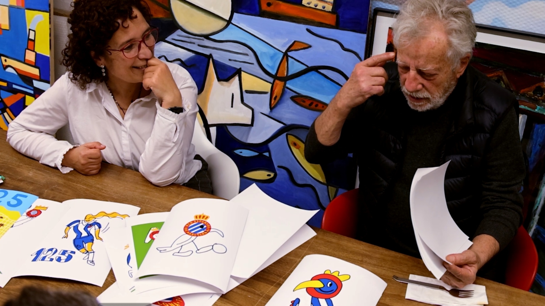 Acompañados por Andrés Merello, media melations manager del club, han visitado el taller del diseñador Javier Mariscal. Sí, el mismo que se ha encargado de dar forma al cuadro conmemorativo del 125º aniversario del Espanyol. Mariscal, con ese estilo tan suyo, ha colocado al inconfundible Perico, la mascota blanquiazul, en un punto clave de la Gran Barcelona, con Sant Adrià y Cornellà-El Prat como escenarios de fondo a ambos costados de la ciudad. No es casualidad: son territorios que representan el latido perico en estado puro. El cuadro no va a dejar indiferente a nadie y es todo un homenaje a un club que siempre se ha reivindicado como algo auténticamente de casa, como oportunamente remarca el diseñador en sus palabras.